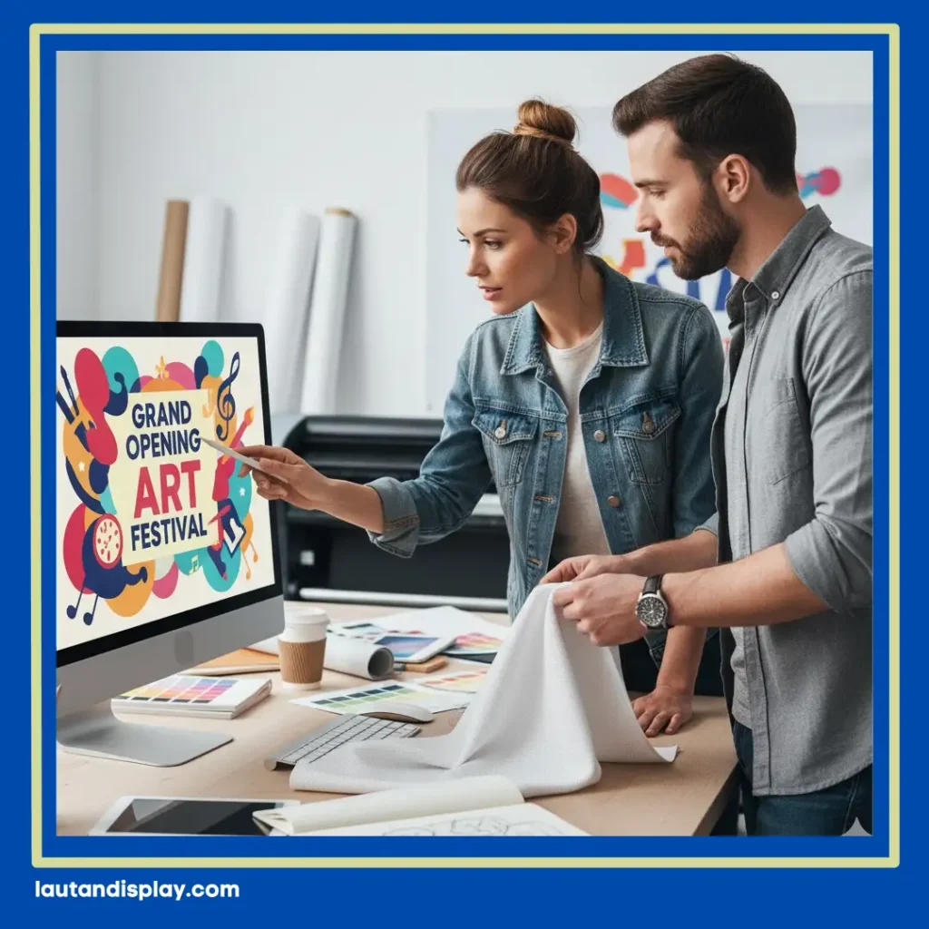 Vendor profesional biasanya juga menawarkan konsultasi desain sebelum cetak. Layanan ini membantu pelanggan menyesuaikan elemen visual seperti warna, tipografi, dan tata letak agar mencerminkan identitas merek secara konsisten. Dengan adanya sesi konsultasi ini, kamu bisa berdiskusi langsung mengenai ukuran, bahan, hingga konsep visual yang paling sesuai dengan kebutuhan acara atau promosi. Hal ini penting agar hasil akhir tidak hanya menarik secara estetika, tetapi juga efektif menyampaikan pesan dan meningkatkan daya tarik brand di mata audiens.