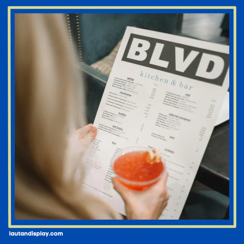 Menu adalah objek pertama yang berinteraksi dengan pelanggan ketika mereka duduk. Jika menu terlihat kusam, lecek, warna pudar, atau desainnya membingungkan, kesan pertama restoran menjadi negatif. Sebaliknya, menu yang rapi dan estetik bisa meningkatkan trust dan kepercayaan pelanggan.