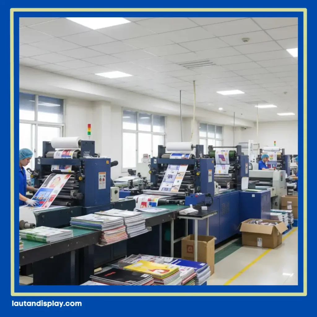 Produksi cetak map glossy dimulai dari proses desain. Tim desain biasanya menyiapkan layout yang memuat identitas brand seperti logo, warna utama, serta elemen visual lainnya. Setelah desain siap, tahap selanjutnya adalah pencetakan menggunakan mesin cetak offset atau digital tergantung jumlah pesanan.