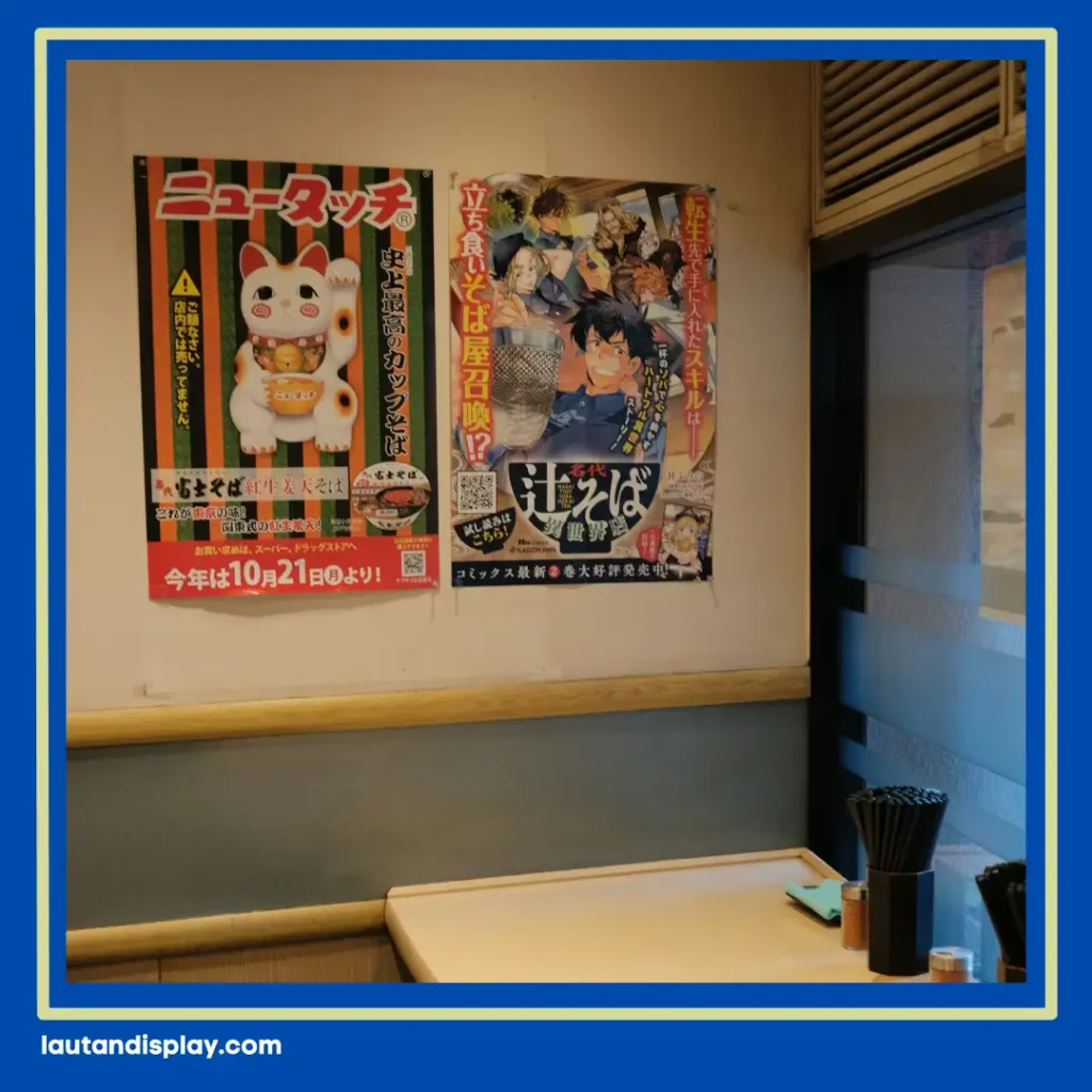 - Dipasang di area dekat kasir untuk menarik perhatian pembeli sebelum melakukan transaksi.