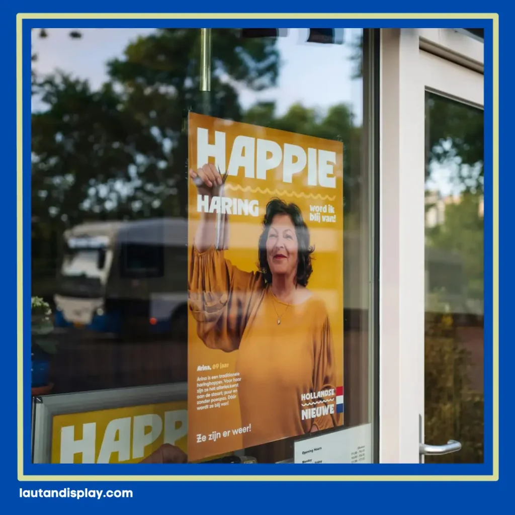 - Ditempel di pintu masuk toko agar pelanggan langsung melihat promo atau produk unggulan.