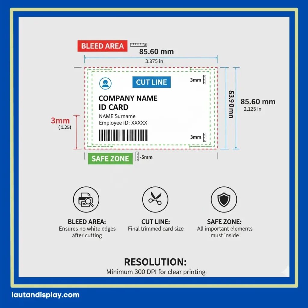 Perhatikan pula area “bleed” dan batas aman ketika mendesain agar hasil cetak tetap rapi.