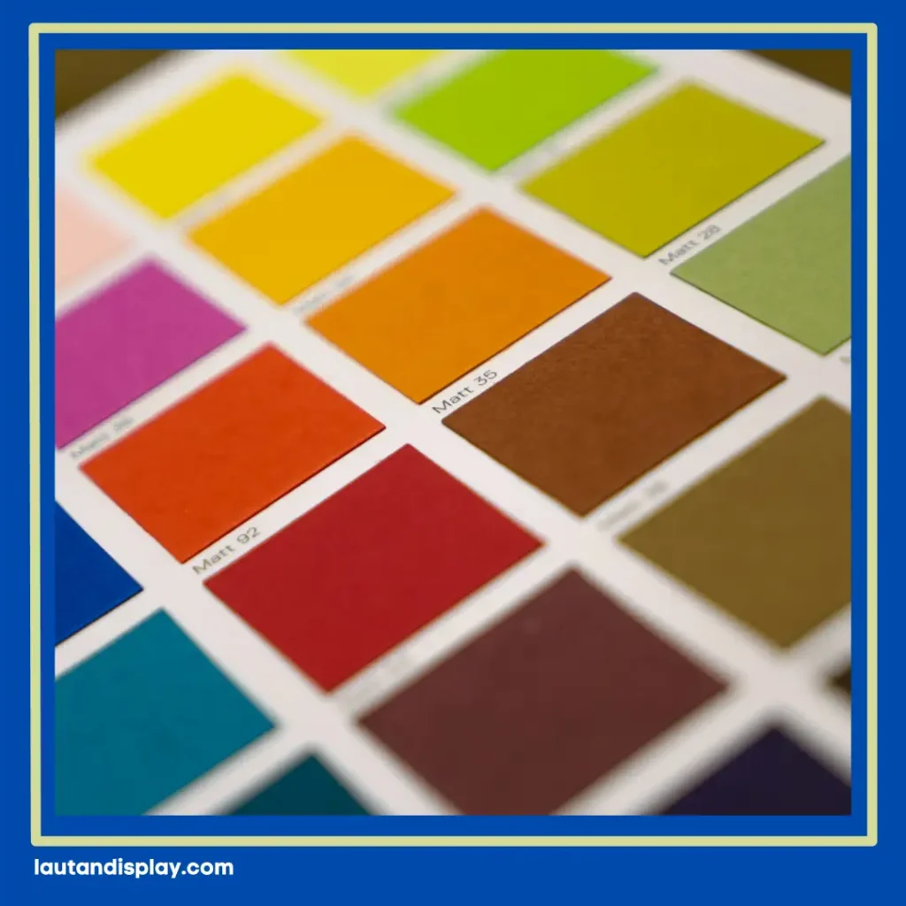 Kamu juga bisa bermain dengan gradasi lembut, blok warna, atau pattern sederhana. Namun pastikan warna tidak mengganggu keterbacaan teks. Kontras harus jelas agar informasi tetap mudah dilihat meski dari jarak tertentu.